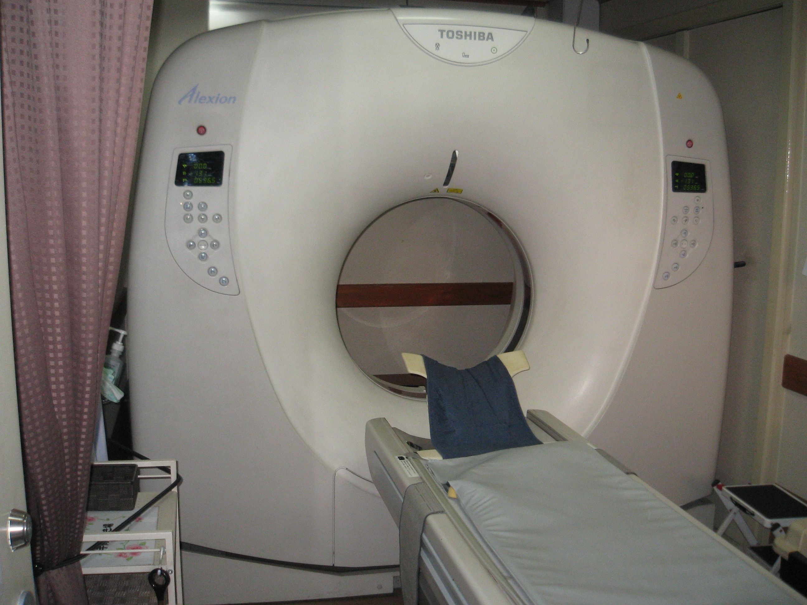 2ヶ月に1回、偶数月の第2火曜日(8月のみお盆の関係で第3火曜日)、午前10時半からCTの機械を積んだ大型車が当院本館東側の駐車場へまいります。25人くらい撮影可能ですが、正午までには予定終了となります。なので一応予約制ですが、当日でも時間が合えば可能です。保険診療となりますので、一部負担は3割(高齢者は収入によって1割か2割)、(3割で診察料込みで2000円くらい)になります。専門家が読影した結果が1週間後にまいりますので、順次結果を聞きに来た方から院長か栗山副院長が説明していきます。必要があればさらに詳しい検査のため当院のデータを添えて総合病院へ紹介します。